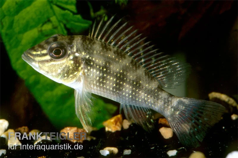 Der Satanoperca daemon, wie der Dreifleck-Erdfresser lateinisch heisst, gehört zur Gattung der Buntbarsche und ist in den Flüssen im Amazonas und Guayana beheimatet. Die schönen Zierfische werden über 20 cm lang, unbestätigte Quellen schreiben sogar bis 30 cm. Manchmal wird er auch als Teufelsangel bezeichnet.