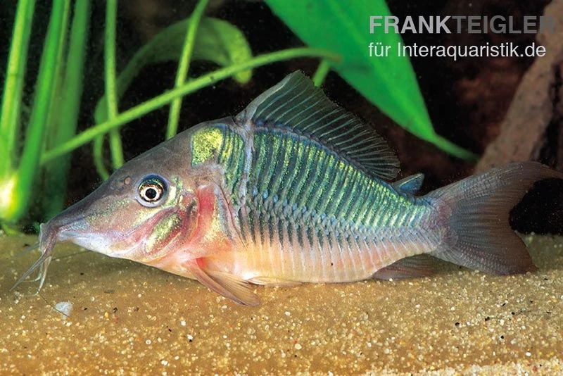 Der Spitzmaul-Panzerwels, Brochis multiradiatus, wird manchmal auch als Corydoras multiradiatus bezeichnet, er ist aber keineswegs ein Corydoras. Wenn man die Tiere mit den Corydoras vergleicht, fallen die Unterschiede sofort ins Auge: Brochis multiradiatus ist hochrückiger und die Rückenflosse ist deutlich länger als bei den Corydoras. Die hübschen Panzerwelse stammen aus Ecuador und sind von metallisch glänzender Grundfarbe, die verschiedene Grüntöne haben kann. Die Brustflossen sind durch starre Stacheln verstärkt, damit er sich besser auf dem Boden fortbewegen kann. Aufgrund dieser sollte man die Tiere nicht mit einem Netz fangen, da sie sich darin verhaken könnten.
